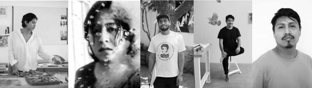 La exposición está conformada por los artistas Lisette Jiménez, Julio Barrita, Marco Velasco, Rubén Ojeda y Víctor Mortales, quienes han trabajado en la revisión crítica del conocimiento artístico contemporáneo. Su exploración atraviesa múltiples lenguajes: escultura, gráfica expandida, acción, video y dibujo.